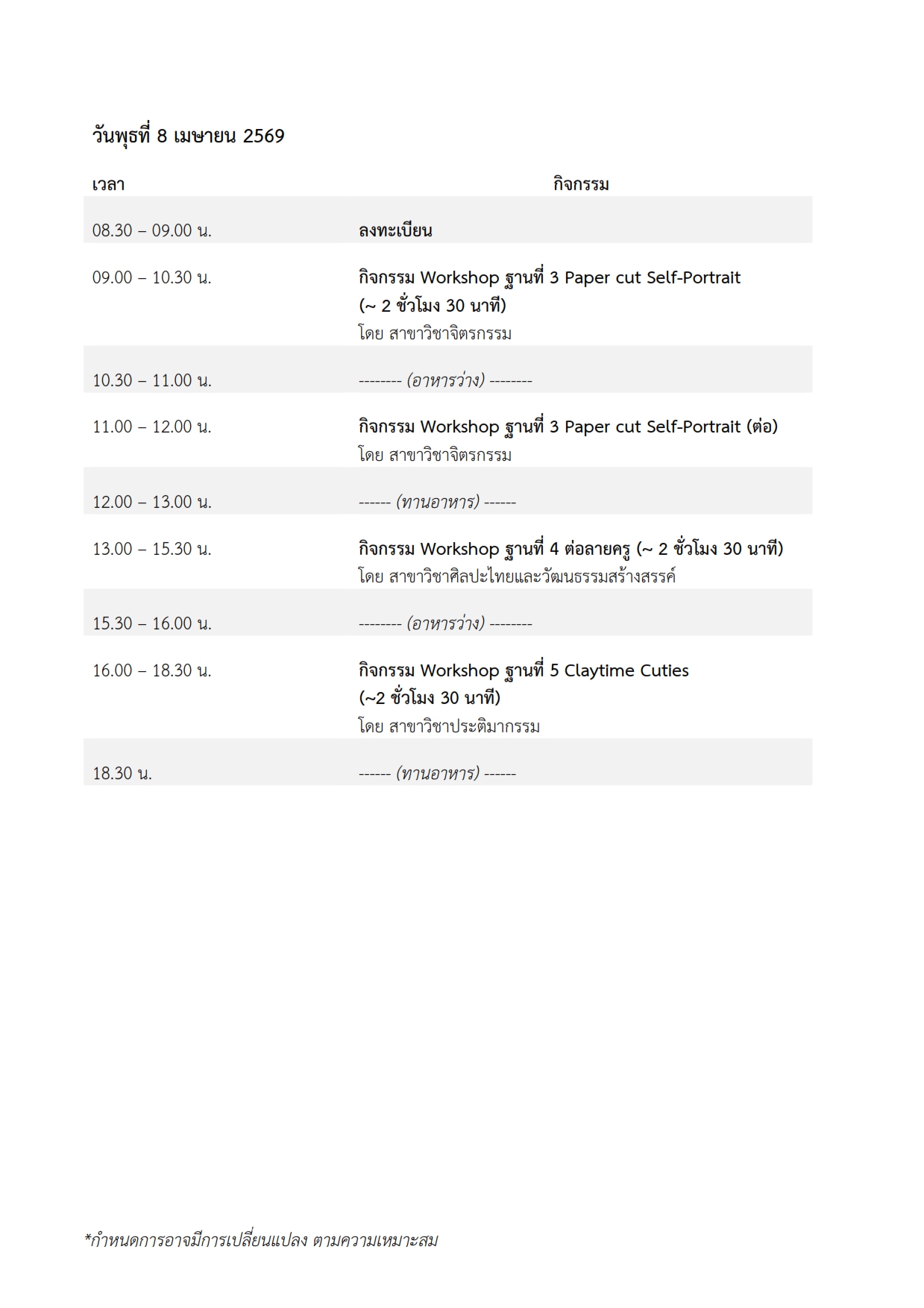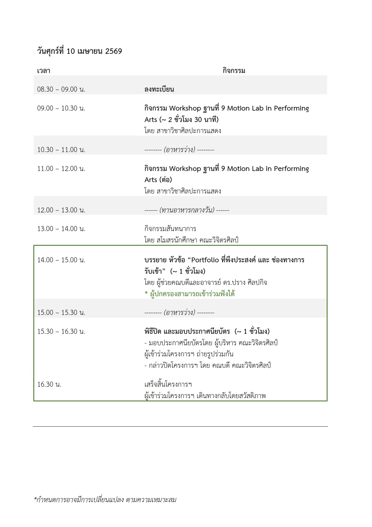 กำหนดการและรายละเอียด